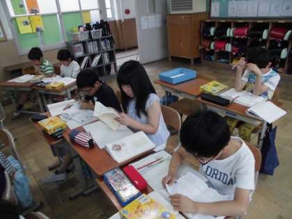 国語の時間に,国語辞典の使い方を学習しました。調べたい言葉の文字を順にたどって,分厚い本の中からその言葉を見つけたときは,「あった!」と大喜び。少しずつ練習をして,知りたい言葉の意味が自分でスムーズに調べられるようになるといいですね。