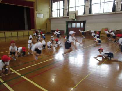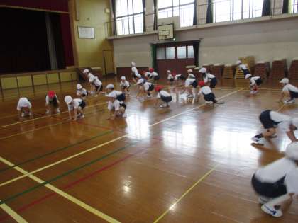 今日は体育館で学年体育をしました。
