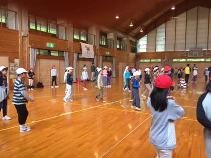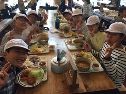 ドッジビーの後の昼食バイキングもおいしくいただいています!