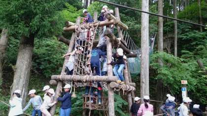 花背焼き製作の活動終了後、ほんの少しですが、冒険の森でアスレチックを楽しむことができました。場所も時間も限られていましたが、生き生きと顔をかがやかせて挑んでいました。