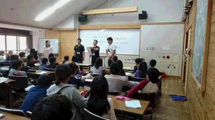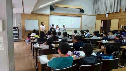 いよいよ最後の活動です。三校で研修室に集まり、この4日間を振り返ります。初めは、同じ係の友達と各係で頑張ったことを出し合い、思いをみんなに伝えました。次は、グループの友達と4日間で心に残ったことからお題を選び、そのことに関する川柳を作ります。野外炊事、登山、キャンプファイヤー、ロッジの夜…。三校合わせて18の班で、なるほど〰、という川柳ができました。先生チームの川柳の発表もありました。