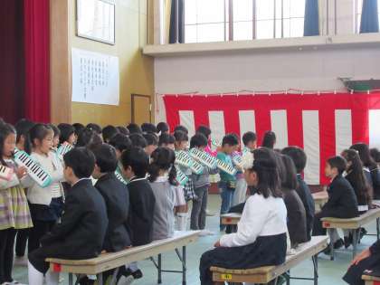 また,2年生は,お迎えの言葉で,元気いっぱい学校の様子を伝えたり,けんばんハーモニカの演奏をしたりと上級生としてよくがんばっていました。