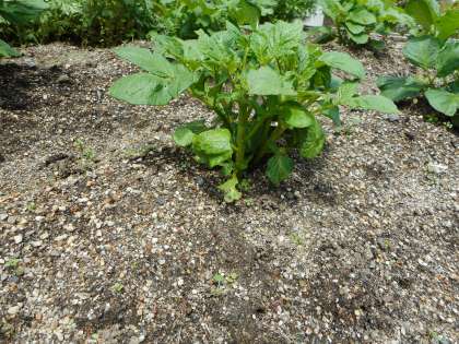 先週に出していました植物クイズですが,答えはわかりましたか?1週間ほど経ってどちらの植物もすくすく育っています。まず,最初に出した植物は,キャベツです。写真の左側です。次に出した植物は,ジャガイモです。写真の右側です。葉っぱも大きくなって青々としています。また,植物クイズを出しますので,楽しみにしていてください。