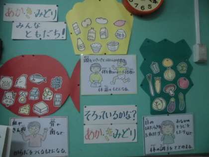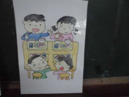ここには,ながいつくえがおいてあったり, たべものにかんけいする
