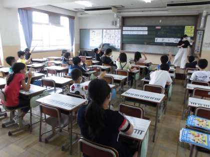 音楽の授業では,前回に引き続きリコーダーのテストをしました。朝休みの時間に,運指の確認をする子もいて,一生懸命練習していました。また,テストの時にうまくいかなかった子も中間休みに進んで再テストを受けに行く姿があり,真剣な様子が見られました。