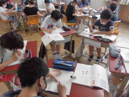 今日の国語科「聞いて,考えを深めよう」の学習ではグループ交流をしました。今回は2つの話題「昼食は給食より,お弁当がよい。」と「授業を受けるなら,オンラインより直接授業を受ける方がよい。」という内容を設定しました。はじめに,その話題について賛成か反対かの主張をはっきりさせて,理由や事例なども取り入れて,説得力のある文を一人ひとりが考えます。