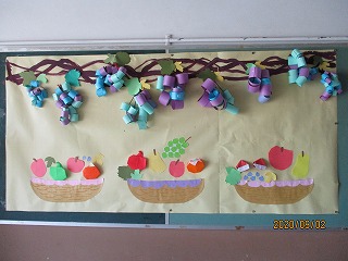 「秋のたべもの」をテーマに,ぶどうや栗,梨など