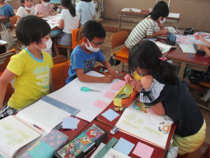 国語の学習では,班でテーマに沿って話し合う活動をしました。実際に山小屋に三日間行く気分になりながら,どんなことをしたいか,持ち物は何にするか,お互いの考えを認め合いながらアイディアを出し合いました。次回は出し合った中から5つ持ち物を選びます。考えをまとめる話し合い活動も楽しみです。