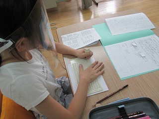 さくら学級では,総合的な学習の時間に「人にやさしい町をめざして」の学習に取り組んでいます。先週と今週は,点字を打つ体験をしたり,町にある設備について調べたりすることを通して,視覚障がいをもつ人の生活について考えました。学習を通して,町に暮らす様々な人の視点に立って考えることを身につけていってほしいと思います。