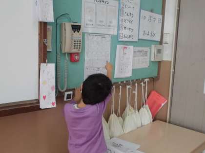 算数「10よりおおきいかず」の学習では,教室の中から,20までの数のものを探しました。みんなのランドセルの数や,探検ボードの数,クレパスの数などを数えて,ノートに書きました。また,既習事項を生かして,2ずつ数える姿も見られ,早く,正確に数えることができていました。