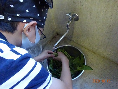 5年生になって初めての調理実習をしました。グループで協力しながら進めていきました。「おいしい!」,「うまくできた!」という声が聞こえてきました。