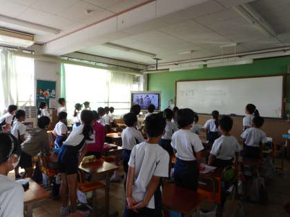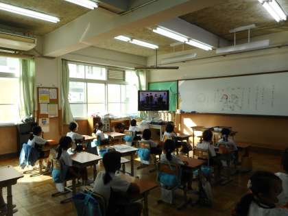 今日は,スポーツフェスティバルを行いました。開会式は,各教室でビデオ視聴し,応援団長の選手宣誓や,赤白別シュプレヒコールをしました。