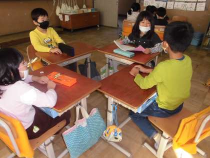友だちのそうだんごとを聞いて,考えを出し合う学習をしています。話し合いの流れにそって,自分の考えを伝えたり,相手の考えを聞いたりしながら,相談に関心をもって話し合いを進めることができました。