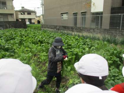 数ミリほどの小さな種から,1メートル近くあるすぐきに成長することに驚きながら学習していました。