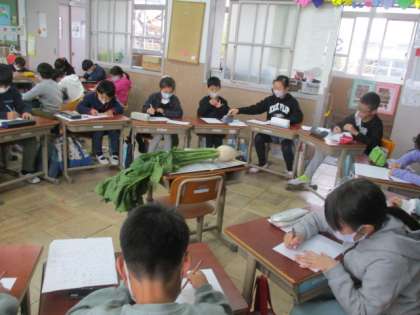 学校に帰ってからは,いただいたすぐきを絵に描いたり触ったりして学習を深めました。