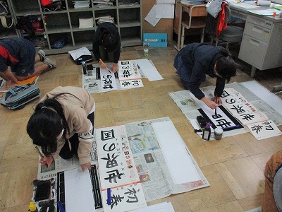 昨日は,書き初めにチャレンジしました。文字の大きさや組み立て,さらに文字の中心に気をつけながら書いていきました。長い画仙紙に書くのは,なかなか難しかったようです。