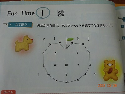 ALTの先生と一緒に学習をしました。Fun Timeで,英語で早口言葉に挑戦したり,教科書を活用したりしました。この1年間で英語を話すことも,聞き取ることも上手になりました。