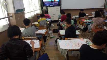 絵の具やパス,コンテを使って思いのままに形や色を工夫して描きました。来週の図工ではどんな気持ちを表現したのか友達と交流します。