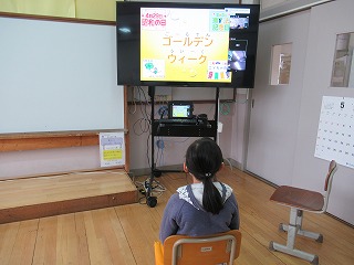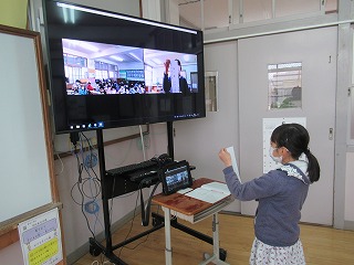 1枚目の写真は憲法月間朝会の様子です。今回は,各教室でリモートの画面を通して校長先生の話を聞きました。2枚目の写真は5年生の俳句集会の様子です。春の俳句を1人ずつ発表し,気に入った句の感想を書きました。さくら学級児童もカメラに向かって自分で考えた俳句を堂々と発表できました。