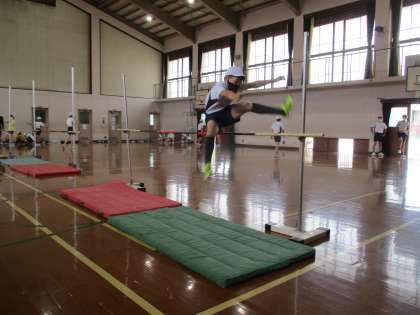 自分の目標を立て,数センチずつバーの高さを調整しながら,記録に挑んでいます。
