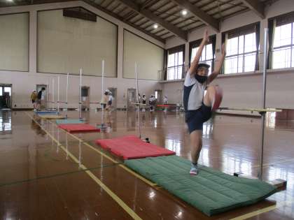 手をしっかり上げる,バーに近づく,しっかり踏み込むなど,工夫をしながら頑張っています。