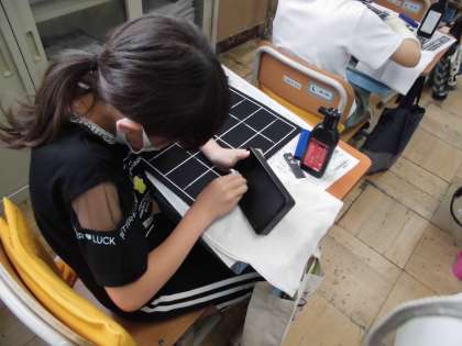 子ども達が楽しみにしていた毛筆の学習が始まりました。用具の名前や準備の仕方,筆の持ち方などをしっかり聞いた後,いよいよ筆に墨をつけて線を書きます。今まで味わったことのない感覚を味わいながら,いろいろな線を思い思いに半紙に書いていました。用具の後片付けもしっかりがんばっていました。
