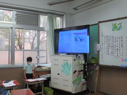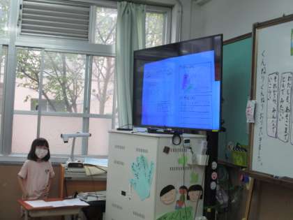 「やくそく」の学習で,自分のお気に入りの場面と理由を絵や文に書き発表をしました。それぞれに選ぶ場面や理由が異なり,友だちの意見を楽しく聞くことができました。