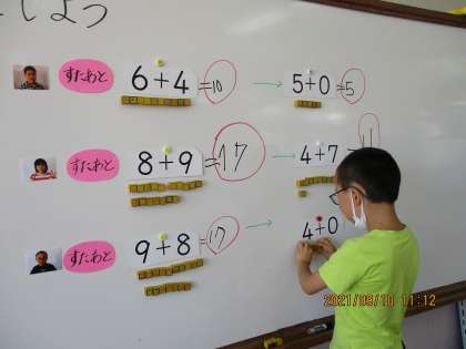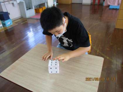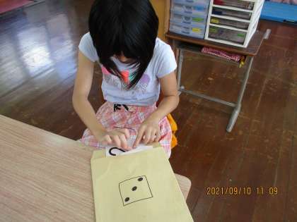 今日の3時間目,算数の学習で「けいさんすごろく」をしました。サイコロをふって,出た目の数の封筒から計算カードを引き,計算をします。正しく計算し,ゴールできて喜んでいました。
