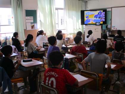 10日(金)になかよし集会がありました。「あおいらくだ」というお話の映像を見て,感じたことや考えたことなどをテレビ会議システムを使って他クラス・他学年と交流しました。子どもたちは真剣な顔つきで考え,発表した子にはすぐに拍手を送るなど,離れていても,今できることをしっかりやろうと一生懸命に頑張っていました。