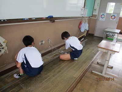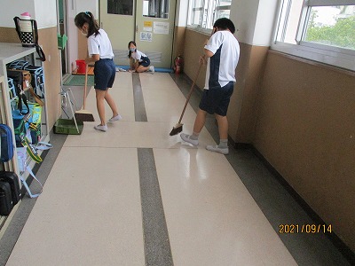 掃除時間の様子です。担当の場所を協力しながら掃除をしています。