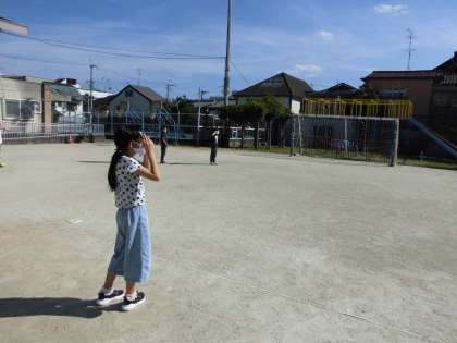 今日はいいお天気だったので,運動場でかげができているときのかげの向きや太陽の位置を調べました。遮光版を通して見る太陽に大興奮の子供たちでした。