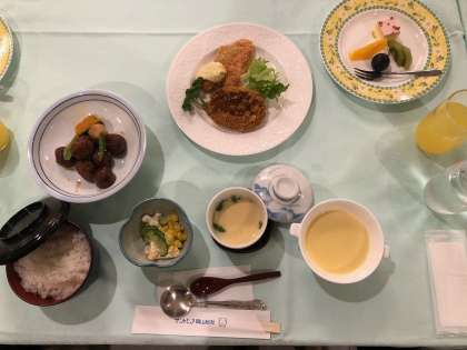 スープに茶碗蒸し,デザートまでついた夕食を嬉しそうにほおばっていました。