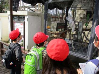 今日は,とても楽しみにしていた校外学習で,京都市動物園に行ってきました。グループで協力してクイズを解きながら園内をまわり,楽しく活動ができました。子どもたちは動物に興味津々で,「キリンは舌が長いんだね。」,「ペンギンは泳ぐのが速いね。」などと,新しい発見もあったようです。