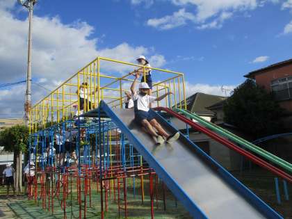 体育科の学習では総合遊具の使い方を再確認しました。緊急事態宣言中は遊具を使うことができませんでした。また,緊急事態宣言が明けてからも,スポーツフェスティバルに向けて100走や表現運動の学習をしていたため,なかなか遊具を使う機会がありませんでした。久しぶりに遊具を使うということで,安全に遊ぶためのルールや支持の仕方を確かめました。