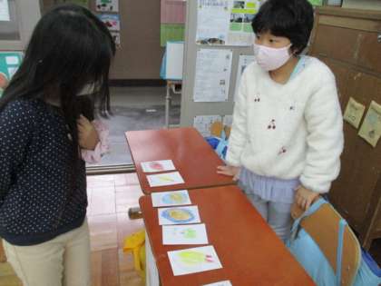 「どれがおすすめですか?」「〇〇を一つ下さい。」と,楽しそうに活動していました。最後はお気に入りのカードを選びました。