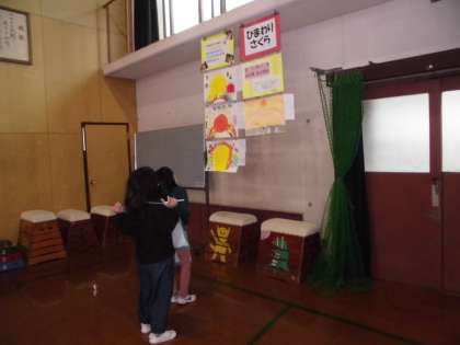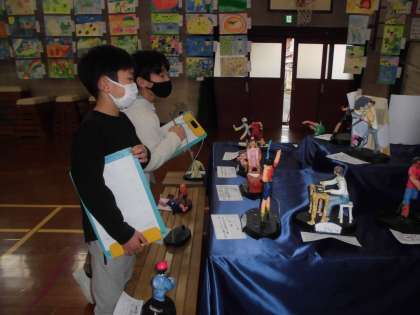 自分の作品をあらためて見直したり,他学年の作品のよさや面白さをたくさん見つけたりしながら,作品を鑑賞していました。
