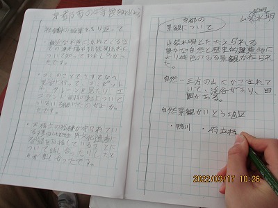 社会科の学習のまとめに,京都市の特色について調べ学習をしました。伝統産業や,国際交流,自然や景観について,自分でテーマを決めて調べました。