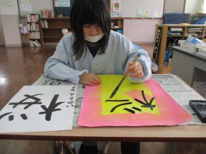春にまつわる字をそれぞれで選び,お手本をよく見て書きました。