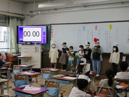 昨日に引き続き,今日は1年生,2年生,3年生の参観・懇談会がありました。1年生にとっては初めての参観でしたが,最後まで集中して取り組んでいました。友達と名前カードを交換して,自分の名前をしっかり伝えられました。2年生は国語科の学習で音読発表会をしました。役になりきって取り組めました。