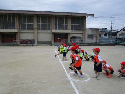 今日から体育科「リレーあそび」の学習が始まりました。チームに分かれ,バトンパスの練習をしてから2チームごとに対戦をしていきました。その間,他のチームは拍手をして応援をしていました。