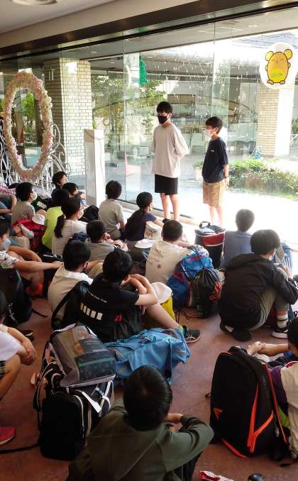 退館式をしています。お世話になった宿のみなさんに感謝です。これから 倉敷美観地区にむかいます。