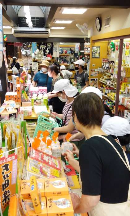 おみやげをの買い物を楽しんでいます。何かを買おうかな?何をあげれば喜んでくれるかな?すごく考えながら買っています。