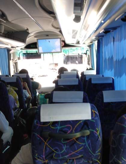 倉敷美観地区を出発しました。2時間くらいバスに乗って姫路城に行きます。車内で映画を観ながら移動です。