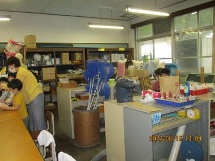 生活科の学習で,給食室と理科準備室を探検しました。給食室では,たくさんの野菜を切る調理員さんの様子や大きな泡だて器など,たくさんの発見ができたようでした。理科準備室では,人体模型や様々な器具に興味津々の様子で探検をしていました。