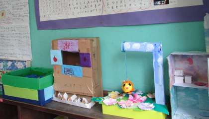子どもたちのにぎやかな声が教室に戻ってきました。宿題や自由研究、絵日記などの課題を提出した後、久しぶりの教室を眺めたり、友だちとさっそくおしゃべりをしたりする子どもたちの姿が見られました。教室後ろの掲示板には、朝顔の観察記録や自由研究の作品がずらりと並びました。