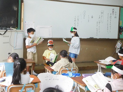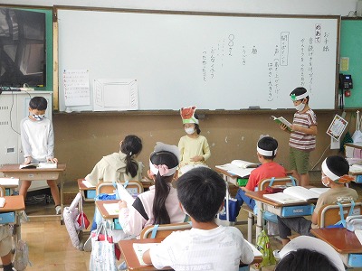 2日間に分けて、音読劇を行いました。友だちのいいところや、よかったところをノートにまとめました。悲しそうに言ったり、怒っているように言ったりして工夫していました。