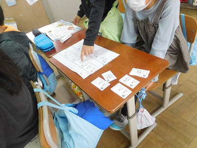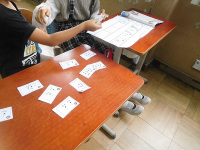 カードを使って、くりかえしのリズムを作り、友だちと交流したり、リズムを打ったりしました。