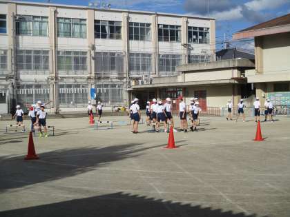 ハードルを置く場所をチームで相談しました。個人走であるハードル走を、チームで相談することでリレーにしました。題して「ハードルリレー」。ハードルを置く台数を1台また1台と増やしていくたびに、話すだけではなく実際にハードルを走り越えながら相談する様子も見られました。