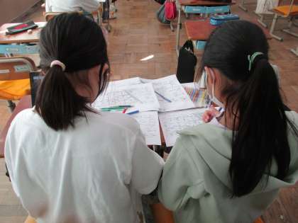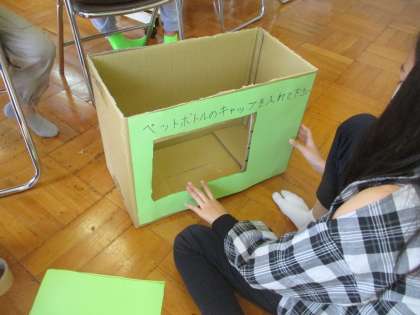 それぞれのグループに分かれて、SDGsの取り組みをすすめています。校区内をきれいにする活動の計画を立てたり、ペットボトルキャプ回収箱を制作したりと、とても意欲的に取り組んでいました。