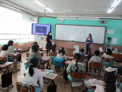 今日の外国語活動では、アルファベットの発音や文字の形について学習しました。また、授業の最初には日本と海外でのハロウィンの歌や文化の違いについて学習し、様々な違いに驚いていました。